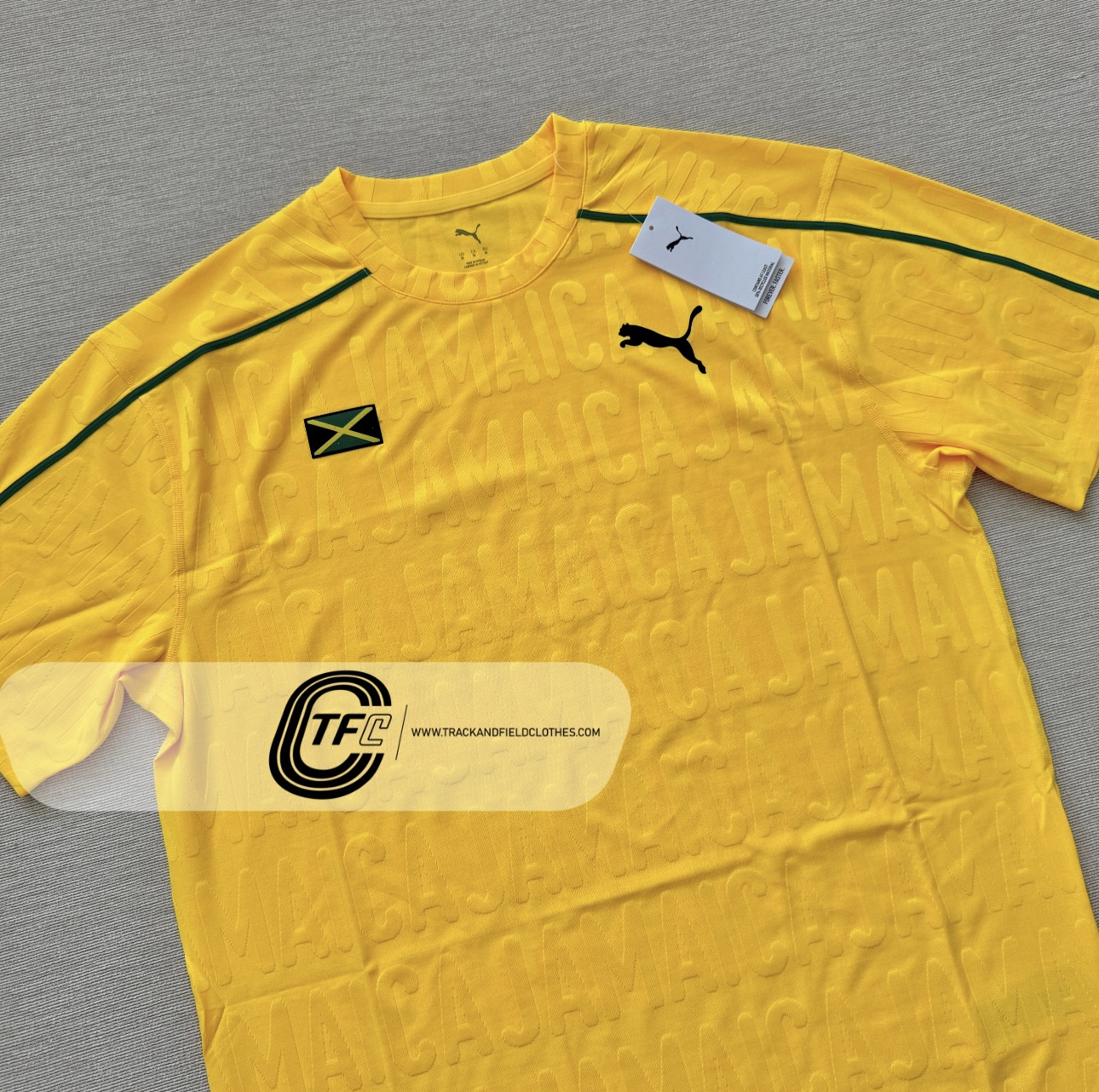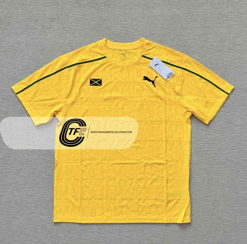“Celebrating nearly 25 years of the PUMA x JAMAICA partnership, the ceremony pack is designed to authentically represent the unique culture of speed and fashion in Jamaica. Worn by Jamaica’s elite athletes, the Unisex Ceremony Tee belongs to the Jamaican Athletics collection.”