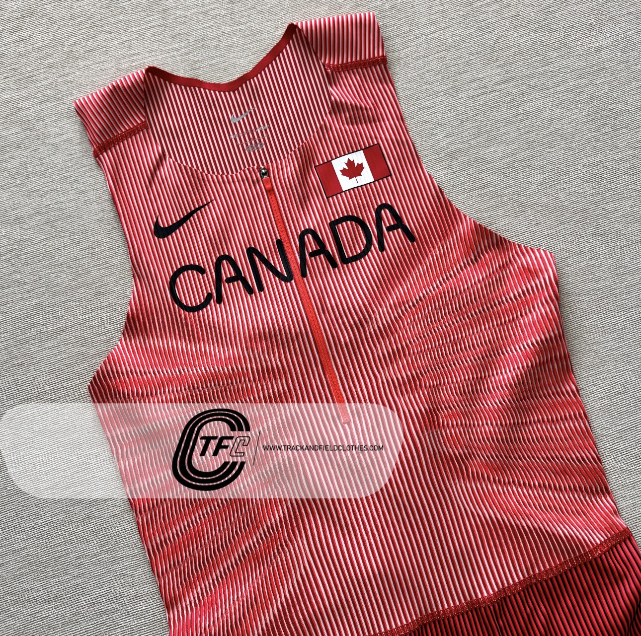 The same being worn by Canada track and field team (Athletics Canada) athletes during the 2024 and 2025 seasons. Released for Paris 2024 Olympic Games.